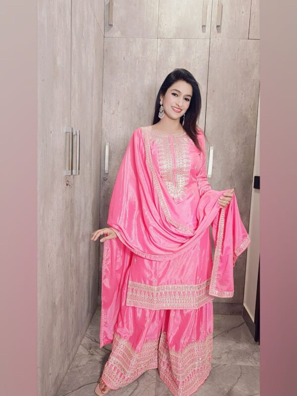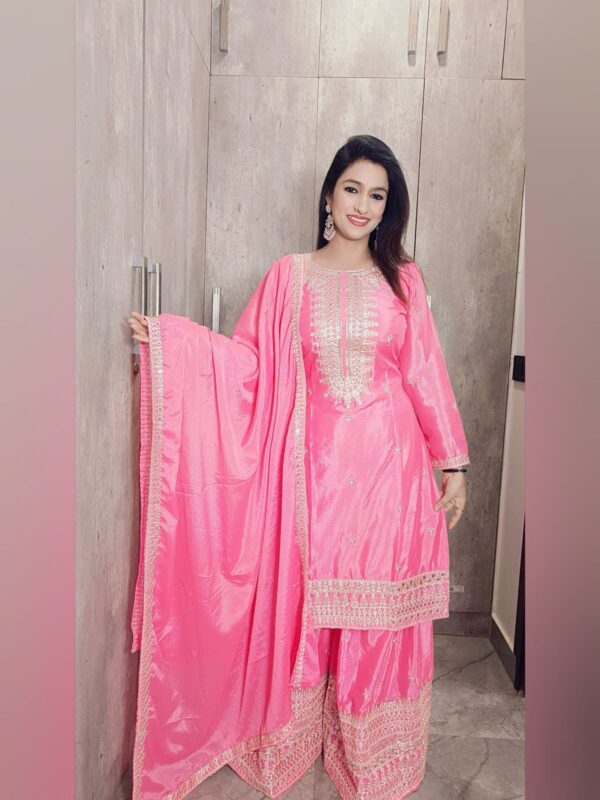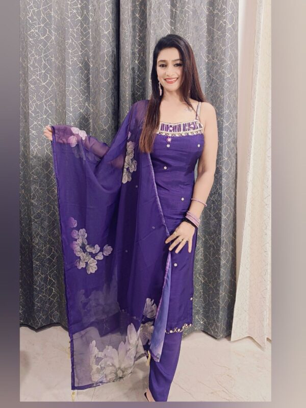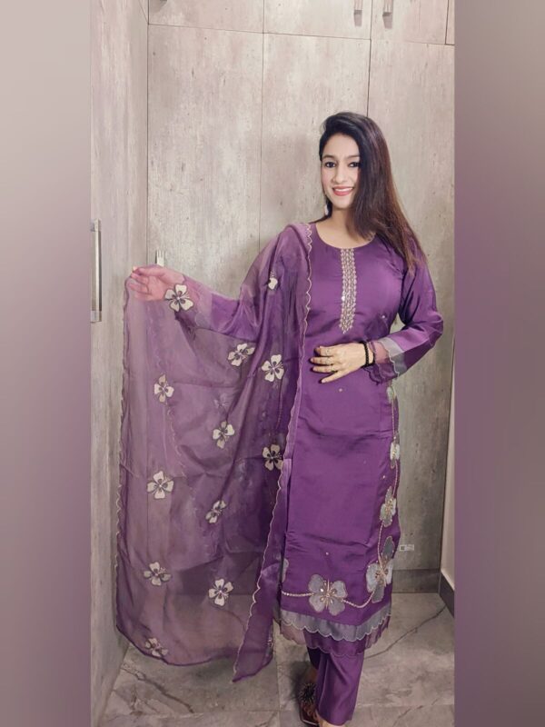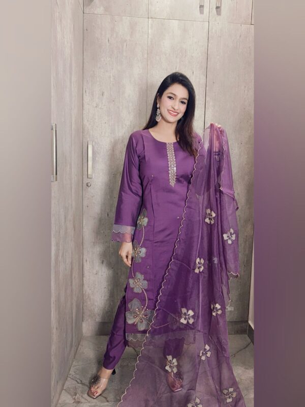Purple Dola Silk Straight Suit Set With Beautiful Embroidery