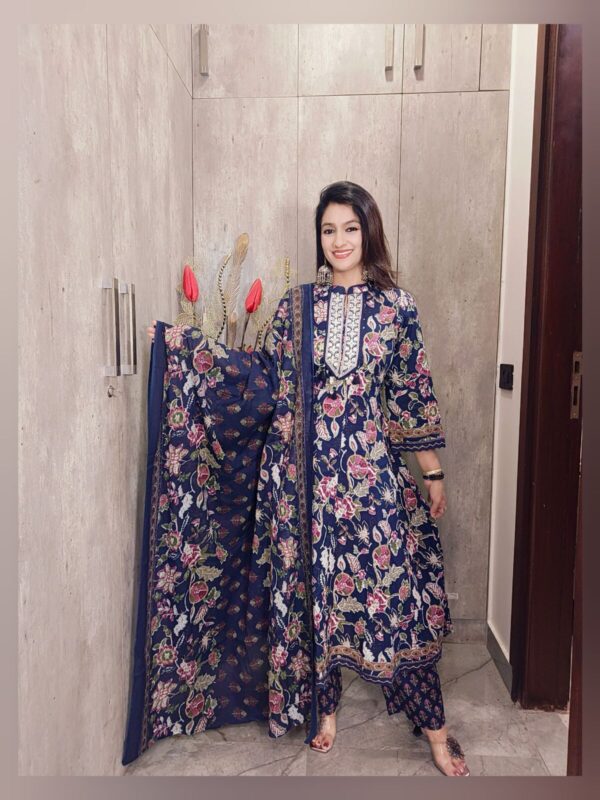 Pure Muslin Embroidered Straight Suit Set With Dupatta