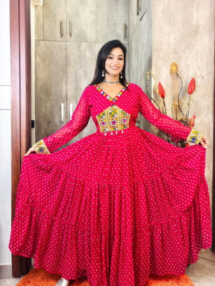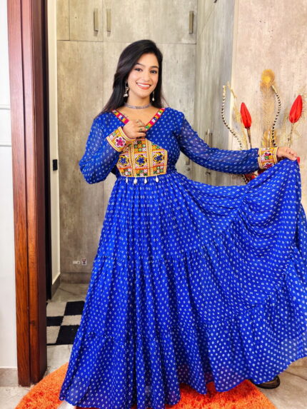Make a graceful statement with this stunning gown crafted in premium Georgette fabric, complete with soft inner lining for a comfortable fit. The unique purplish-blue shade—an elegant blend of purple and blue—adds a regal charm, perfect for festive occasions or evening parties. With its flowy silhouette and timeless appeal, this gown effortlessly blends sophistication with style, making it a must-have in every fashion-forward wardrobe.